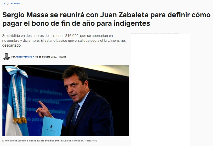 - 06/10/2022 – El Gobierno planea un nuevo bono para indigentes (128027)