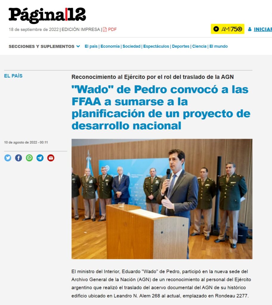 El 9 de agosto pasado, el opereta represivo de Cristina. que al parecer ensaya un perfil conciliador, se mandó a fondo, elogiando y convocando a las Fuerzas Armadas a que (escuchen bien, ésto) a «sumarse a un proyecto de desarrollo nacional».