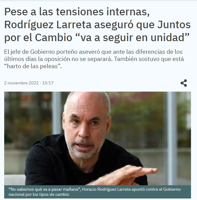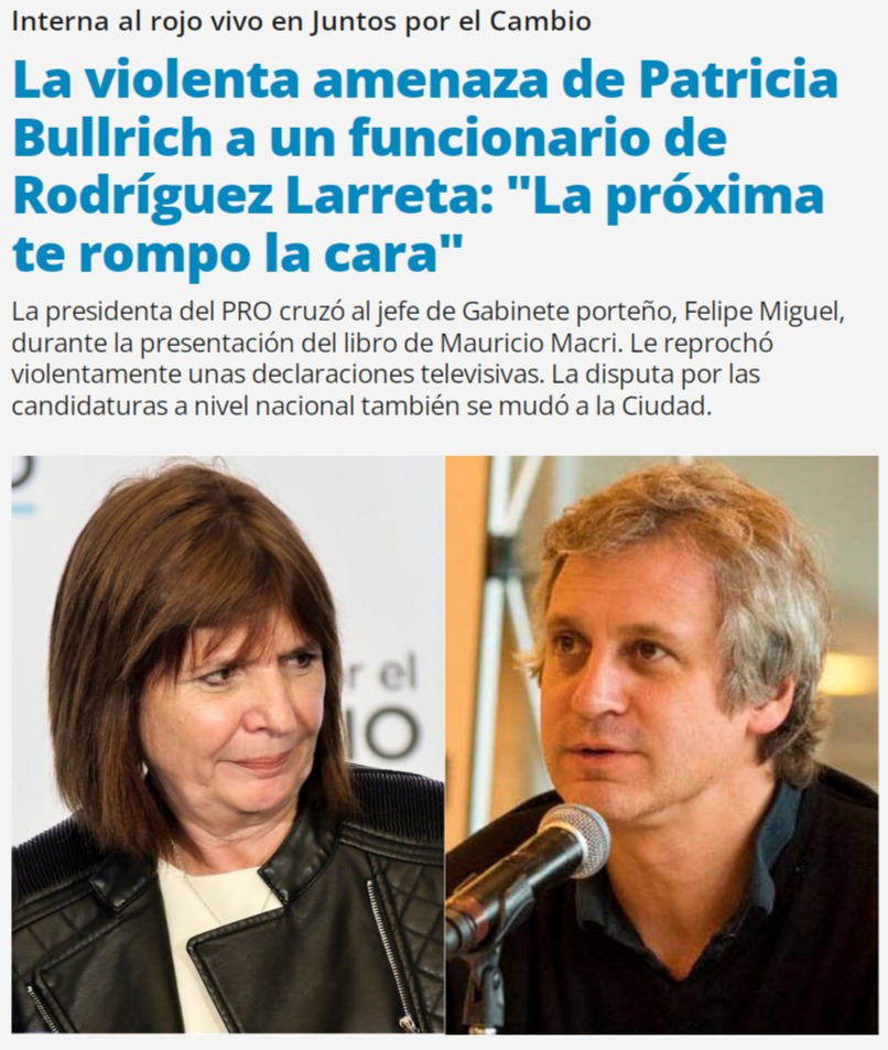 - Patricia Bullrich, contra Rodríguez Larreta por la interna de Pro: “El sector que no quería el cambio perdió” La Nación