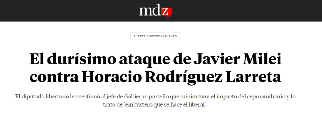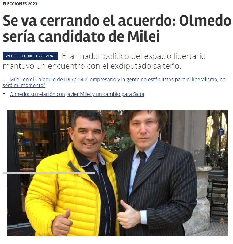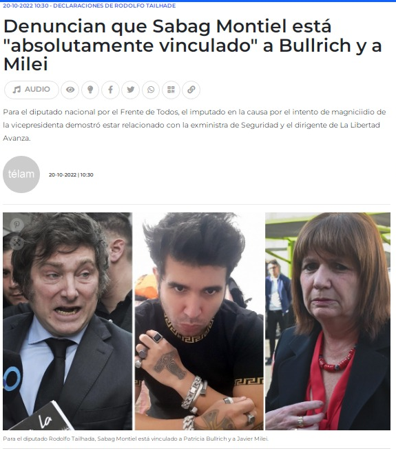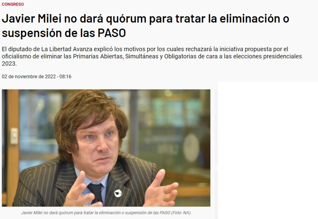AR172 – Milei y el armado de la ultraderecha 02/11/2022 – Milei le pega duro a Larreta 01/11/2022 – A un bebé le pusieron de nombre Milei 01/11/2022 – Milei no dará quorum sobre el tema PASO 2023 31/10/2022 – Otra sandez fascista de los llamados libertarios 30/10/2022 – Milei ante la derrota de Bolsonaro 25/10/2022 – Milei incorpora al ultraderechista salteño Olmedo 20/10/2022 – Vinculan a Milei y a Bullrich con el atentado Milei en los medios: Ha ocurrido un error que, probablemente, implique que se ha caído el feed. Prueba de nuevo más tarde. Pages: 1 2 3