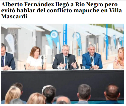 Lo mismo la prensa «opositora», en términos del Gobierno, que se queda inusualmente muda ante algo que aún por interés político debieran cuestionar. No, el Grupo Clarín y todos sus periodistas adictos llegan decir que no son siquiera mapuches y que son terroristas. Suponen que la gente no conoce la Historia, no a los nazis que intentaron entrar a pelear en Mascardi y que fueron retenidos antes de llegar al lugar. Según dice la tranquilidad de esta gente radicaba en que ya le estaban mandando de Buenos Aires tropas y armas para desalojar a los mapuches.
