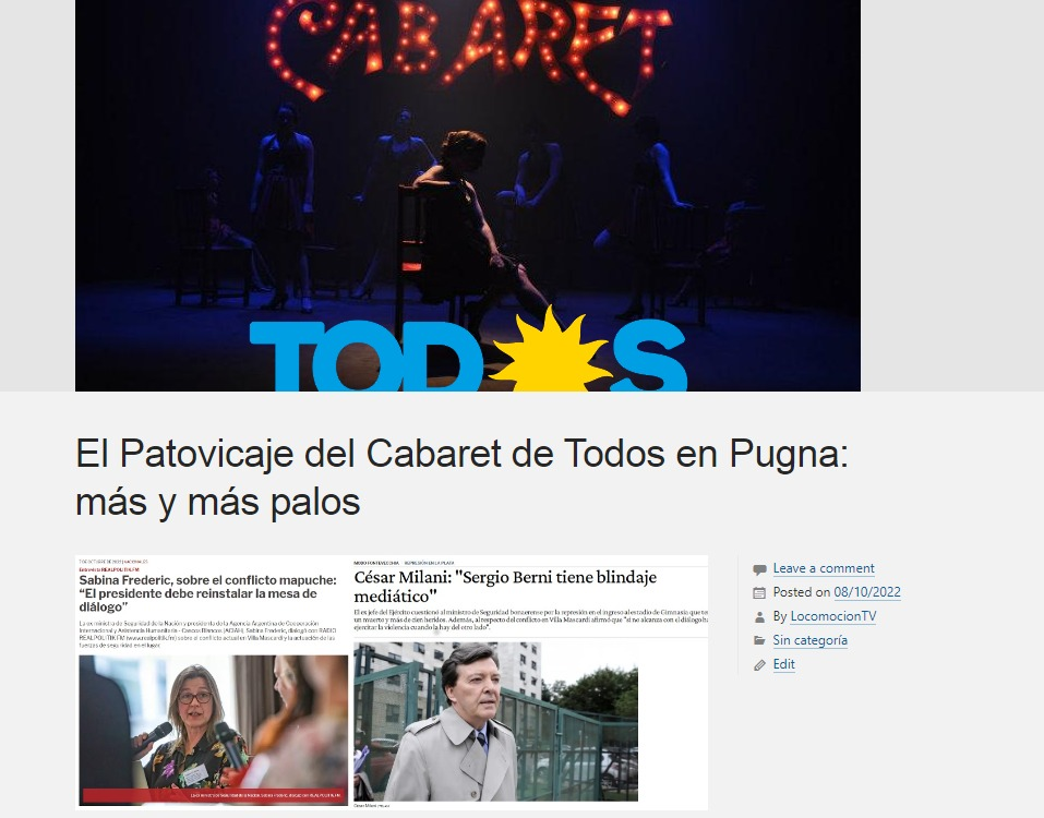 AR177 – El Patovicaje del Cabaret de Todos en Pugna: más y más palos 08/10/2022 – Nota sobre el tema en Locomoción TV Pages: 1 2 3 4 5